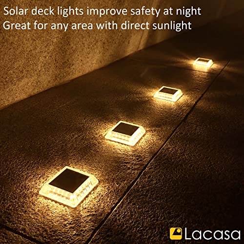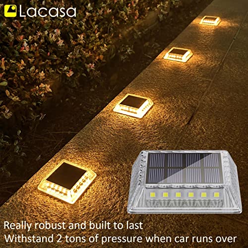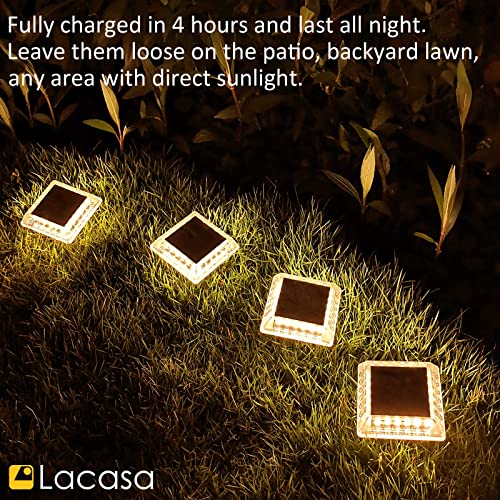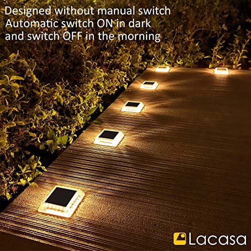 Lacasa Luci Solari Giardino, 4 Pezzi 30LM LED Lampada Solare da Esterno IP68 Impermeabile Luci per Sentieri Auto On/Off Luce Solare per Ponte Passo Percorso Vialetto Scale Cortile, Bianco Caldo 2700K