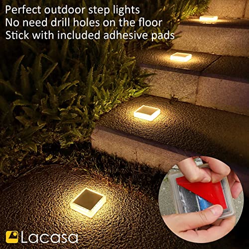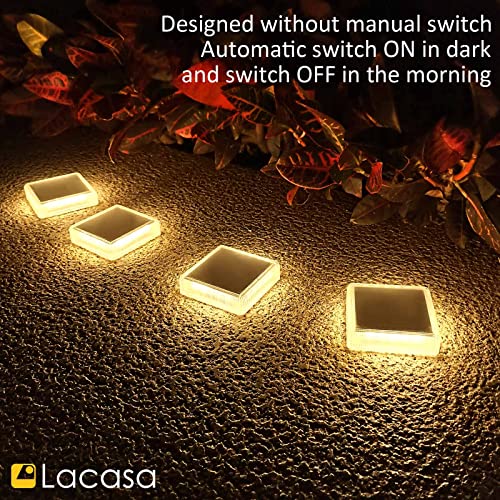Lacasa Luci Solari Giardino, 4 Pezzi 30LM LED Lampada Solare da Esterno IP68 Impermeabile Luci per Sentieri Auto On/Off Luce Solare per Ponte Passo Vialetto Scale, Bianco Caldo 2700K Quadrato