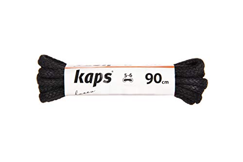 Kaps Lacci Cerati Spessi, Lacci in Cotone 100% Naturale con Finitura in Cera, Quattro lunghezze 60 cm - 120 cm, Made in Europe (90 cm - 36 pollici - 5 to 6 coppie di occhiell / 91 - Nero)