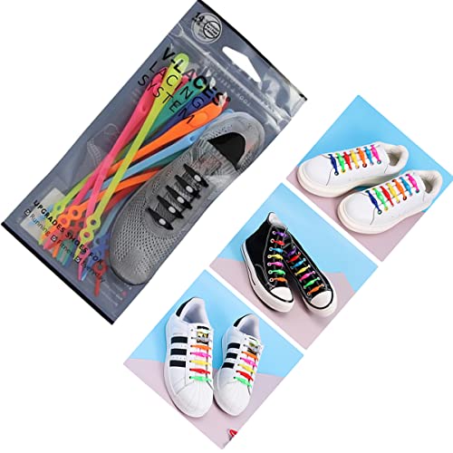 Lacci pigri in silicone La terza generazione di lacci in silicone a doppio foro 14 pezzi senza legare lacci delle scarpe per adulti, Mix, Medium
