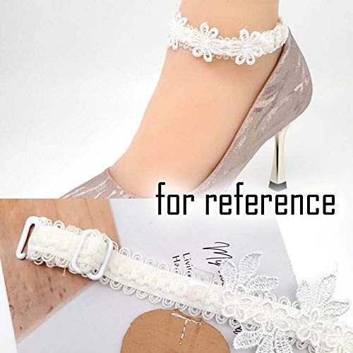 Lacci per scarpe da sposa con fiori bianchi Cinghie per scarpe elastiche in pizzo regolabili Cinghie staccabili per tenere scarpe larghe con tacchi alti