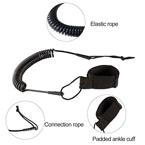 Flessibilità, alta sicurezza: Questa cintura a spirale ha un design di rotazione bidirezionale, che impedisce alla cintura di attorcigliarsi e protegge i piedi dall'aggrovigliarsi. evitare di separare le persone dalla tavola da surf ed evitare che cadano dalla tavola.