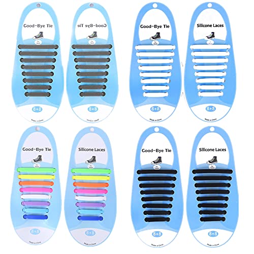 Lacci Silicone 4 coppie No Cravatta Lacci Multicolore Nero Grigio Bianca Impermeabile Lacci Delle Scarpe Elastici per Scarpe Sneakerboots Bordo e Scarpe Casual