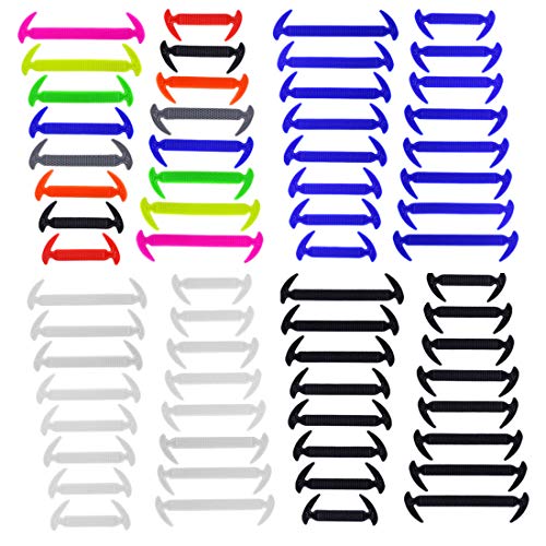 Lacci Silicone Impermeabile, 4 Paia Di Lacci Per Scarpe Elastici in Silicon per Bambini e Adulti, No-tie lacci delle scarpe Per Adolescenti E Sportivi (Blu+ Multicolore+ Bianca+ Nero)