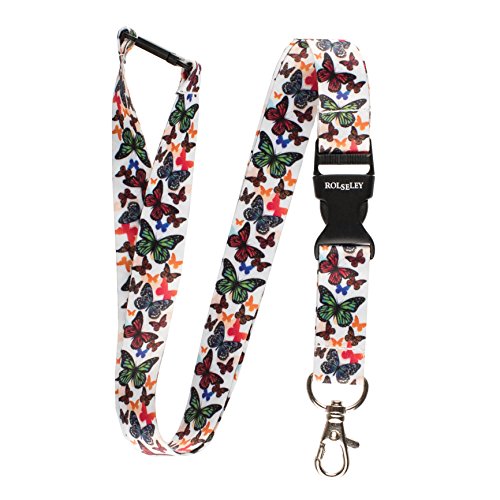 Laccio colorato per chiavi da appendere, dotato di chiusura di sicurezza e gancio a moschettone orientabile multicolore - farfalle