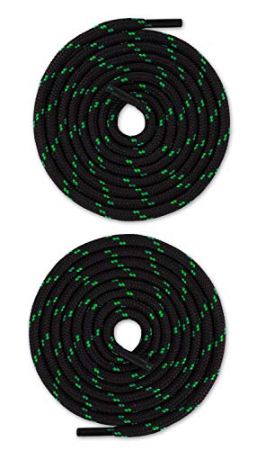 Lacenio 1 paio di lacci rotondi resistenti agli strappi per scarpe da trekking, scarpe da trekking e scarpe da lavoro, in 100% poliestere, Ø ca. 4.5 mm, Nero/Verde fosforescente, 140 cm / ø 4.5 mm