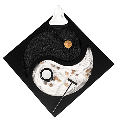 Dimensione del giardino zen Yin e Yang: 30 x 30 cm, statuetta di 11 cm.