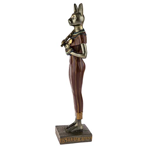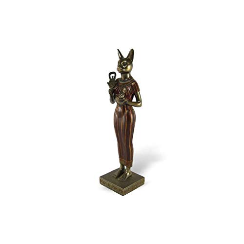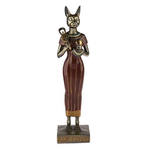 Questa statuetta della dea Bastet vi permetterà di avere nella vostra casa una rappresentazione di questa dea nella sua forma di dea a testa di gatto. È la dea beneficente protettiva dell'umanità, anche dea musicista della gioia, e dea del parto