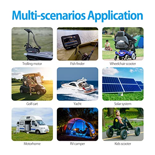 【QUALITÀ AFFIDABILE E BATTERIA DI LUNGA DURATA】 La durata della batteria al litio Lachy 12V è più di 5-8 volte superiore rispetto ad altre batterie (batterie al piombo). La batteria al litio ferro fosfato da 12 V adotta celle LiFePO4 di livello automobilistico con maggiore densità di energia e prestazioni più stabili e maggiore potenza. È molto adatto per fish finder, ruote motrici, tosaerba