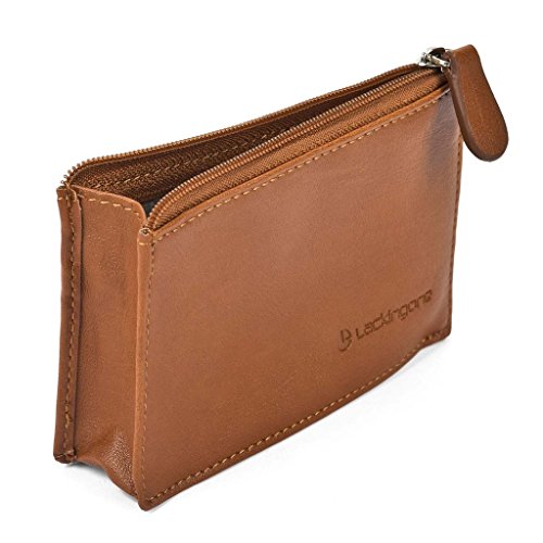 Lackingone RFID Portafoglio in Pelle Portafoglio con Cerniera Lampo Classico Porta Carte di Credito Porta Soldi Portamonete per Uomo o Donna Caramello