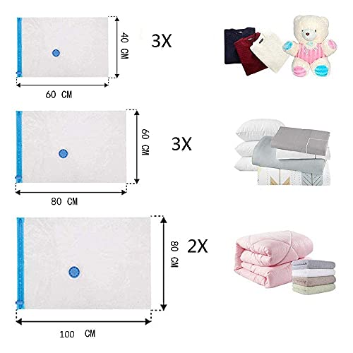 Lacmisc Sacchetti Sottovuoto Vestiti, 10 Pezzi,Buste Sottovuoto Vestiti,2 * 80x100cm,4 * 60x80cm,4 * 40x60cm Sacchi Sottovuoto Riutilizzabili