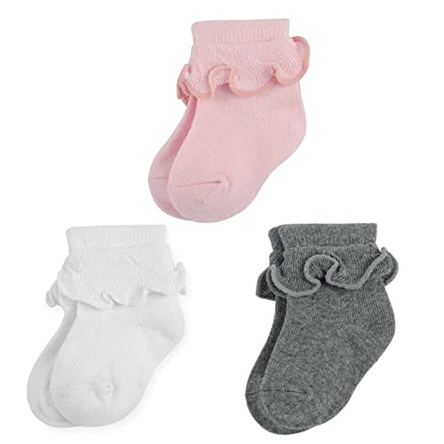 LACOFIA 3 Paia Calzini Neonata da Battesimo in Cotone Calzini Elegante con Volant Principessa Bianco/Rosa/Grigio 6-12 mesi
