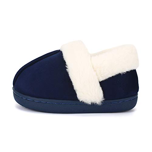 LACOFIA Pantofole Invernali per Bambino Ciabatte in Memory Foam per Ragazzi Calde Scarpe da casa Antiscivolo Blu Marino 32/33 EU