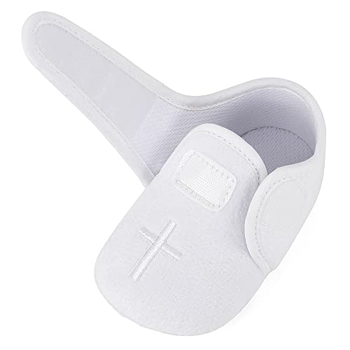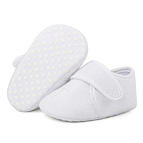 LACOFIA Scarpe da Battesimo per Neonato Scarpette da Culla Scarpine Primi Passi per Bambina con Suola Morbida Antiscivolo Bianco 3-6 Mesi