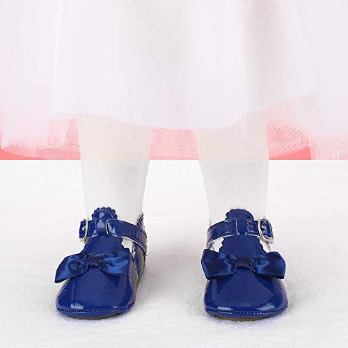 LACOFIA Scarpe da Primi Passi Bambina Scarpe da Battesimo Principessa Antiscivolo Bowknot della neonata Blu Scuro 6-12 Mesi
