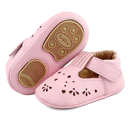 LACOFIA Scarpe Primi Passi Bambina Ciabatte Scarpe neonata in Morbida Pelle Antiscivolo Rosa 6-12 Mesi