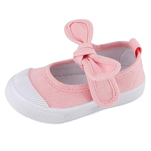 LACOFIA Scarpe da Scuola per Bambini Mary Jane Sneakers di Tela Bowknot per Ragazze Rosa 25