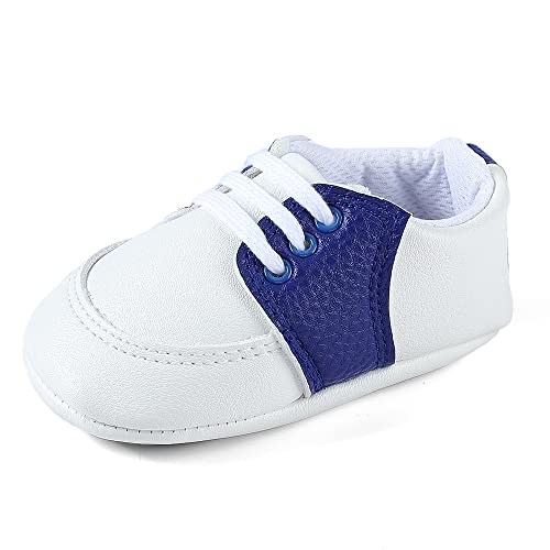LACOFIA Scarpine Primi Passi Bimbo morbide Scarpe Stringate con Suola Morbida Antiscivolo da Neonato Blu Marino 3-6 Mesi