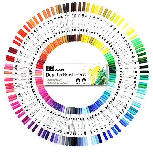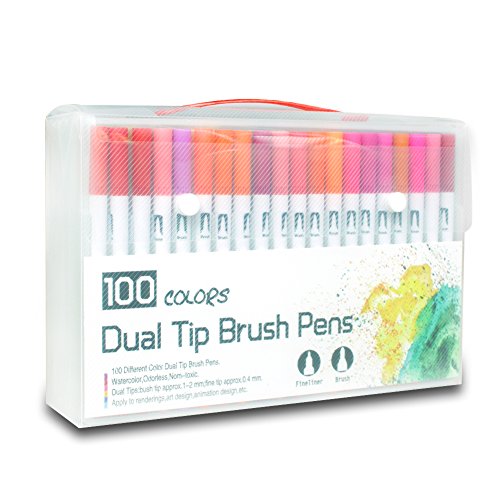 Assortimento di vivaci e intensi colori - Questo 100 colori a base d' acqua doppio pennello punta Art coloring Set penna ha un completo spettro di colori distintivi, consentono di ottenere creativi in stile. Perfetto per disegnare linee e dettagli, pittura, Sketch, pennarello, firma, manga, Graphic Design, illustrazione.