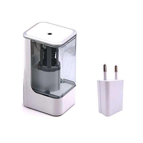 Laconile temperamatite elettrico, lama in acciaio elicoidale tempera matite arresto automatico, per sicurezza portatile con spina UK, matite per falegname di diametro. 6 - 8 mm White