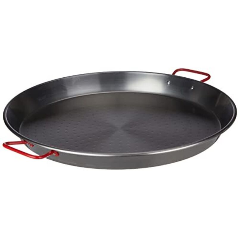 Descrizione Padella per paella da 50 cm, il corridore dalla Spagna. La padella rotonda in ferro ha due manici e una di circa Bordo alto 5,0 cm. Le tradizionali padelle per paella in ferro battuto dalla Spagna sono disponibili in tutte le misure da 30 cm a 130 cm. La padella per paella è tradizionalmente realizzata in acciaio lucido e ha una caratteristica superficie strutturata. Questa padella per paella non dovrebbe mancare in nessuna casa e in nessuna festa. Riso, zafferano e padella per paella costituiscono la base di numerose varianti del piatto nazionale spagnolo. Le utili istruzioni per l'uso della padella per paella sono incluse nella confezione. La padella per paella, qui con 50 cm di diametro, è ideale per 14 porzioni. La confezione include 1 padella per paella da 50 cm. Exp.gew. 2300 g