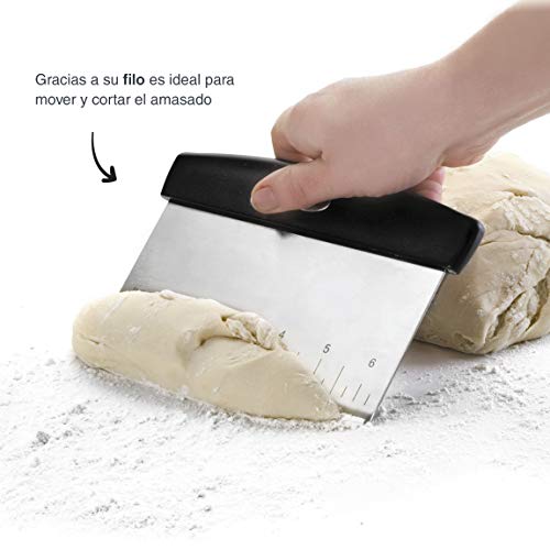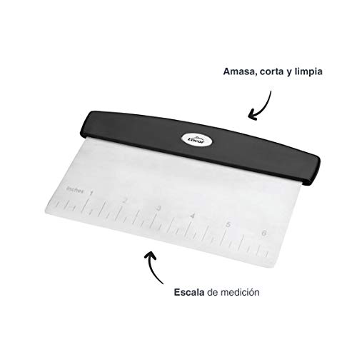 LACOR - 67029 - Scraper Cutter, Rettangolare, Acciaio Inossidabile, Multipurpose, Impastare, Taglio, Misurazione e Pulizia, Ideale per Pane Dough, 16.5 x 11cm, Acciaio Inossidabile