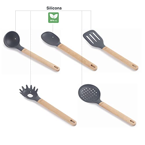 LACOR - 68190 - Set di 5 utensili da cucina UNITE realizzati in silicone e legno di faggio, grigio e legno, senza BPA (69190)