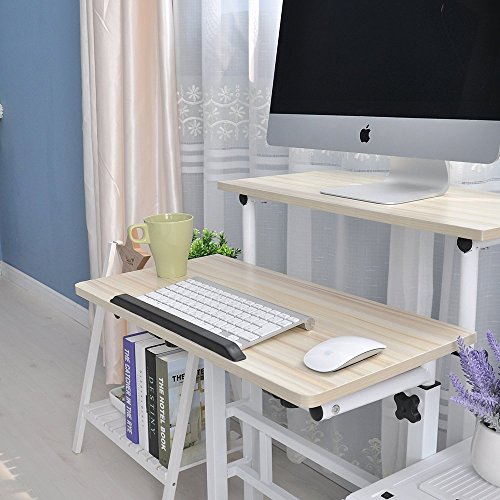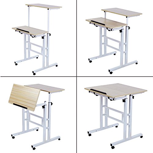 Dimensione complessiva della scrivania: 23,6 "lunghezza x 11,8" larghezza, altezza regolabile da 27,6 pollici a 45,3 pollici. Regolando l'altezza dei due ripiani, può essere utilizzato come scrivania da seduto o in piedi.