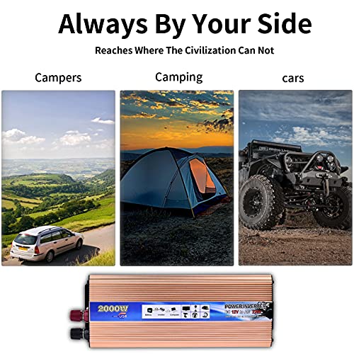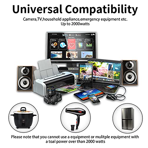 ⏩kit da Viaggio Perfetto - Inverter Converte l'alimentazione da 12 V CC a 220 V CA, collega i cavi della batteria CC direttamente alla batteria 12v del veicolo e dispone di un alimentatore, fornendo una vasta gamma di apparecchiature elettriche a meno di 2000W, come telefoni cellulari, computer, ventilatori elettrici, caffettiera, ecc. (notare che: Non è consentito collegare questo inverter a un alimentatore a 24V!)