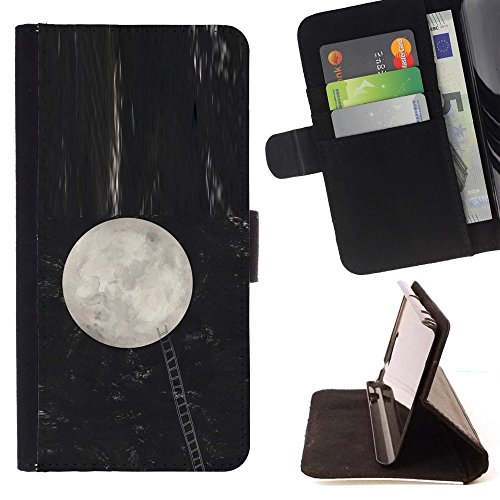 For HTC One Mini 2 M8 Mini Case, Luna Ladder Metafora Notte Raggiungere - Portafoglio in Pelle della Carta di Credito Fessure PU Holster Cover in Pelle Case