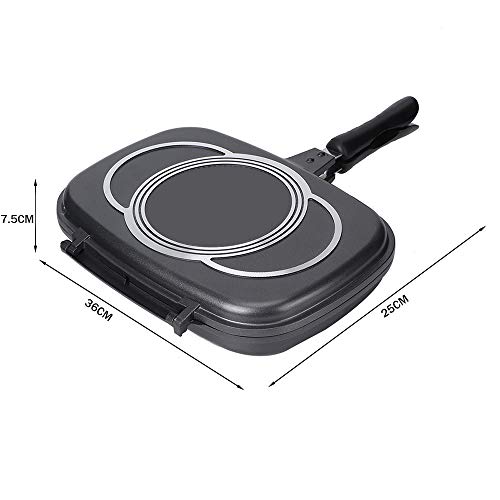Ladiehsow Padella in alluminio a doppia faccia Flip Antiaderente Barbecue Strumento di cottura per friggere per fornello con manico anti-scottatura