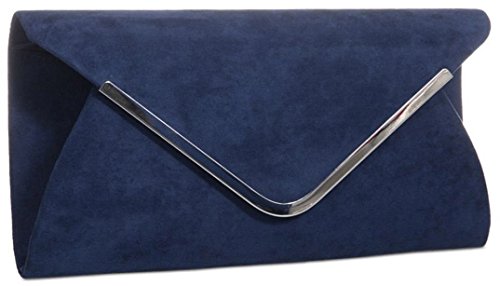 Ladies Classic Medium Sized Faux Suede Envelope Clutch Bag with Contrasting Trim - Fuchsia