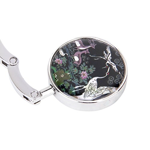 1 x Ladies' Folding Bag/Handbag/Purse Hook Hanger Holder-Red-Crowned Crane & Deer Pattern