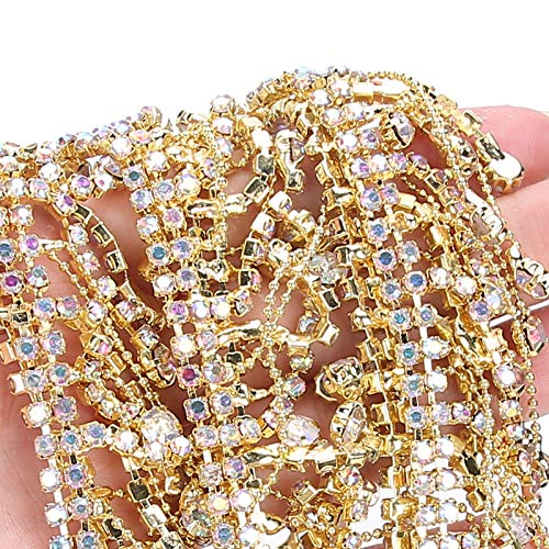 Ladieshow 91cm Cristallo Strass Frangia Trim Catena, 1 Yard Tagliabile Frange per Vestiti Nappa Catena Strass Frangia Nuziale per Abito Borsa Design Artigianale Decorazione di Nozze (Oro)