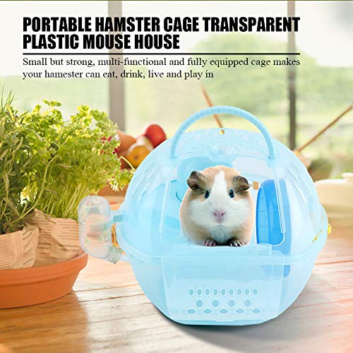 Ladieshow Gabbia per criceti Portatile Casetta per Topi in plastica Trasparente Accessori Completamente attrezzati Habitat per Piccoli Animali con Manico(Blu)