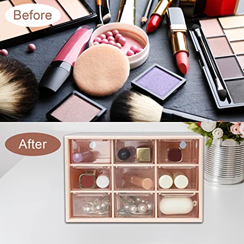 Ladieshow Scatola portaoggetti per Piccoli Oggetti, Mini cassettiera in plastica Trasparente con 9 cassetti, Custodia cosmetica per Gioielli per Ragazza. 7,1 x 3,7 x 4,5 Pollici(Bianca)