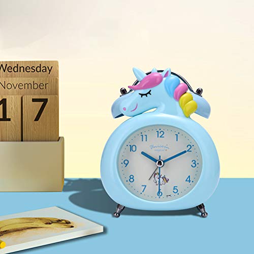 Lafocuse Sveglia Bambini Blu Unicorno, Sveglia Silenziosa con Luce Notturna, Sveglia da Comodino Analogica per Ragazze con Doppia Campana 10 cm