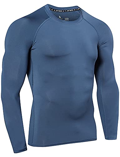 LAFROI CLY08 - Maglia a compressione da uomo a maniche lunghe UPF 50+, Blu grigiastro, M