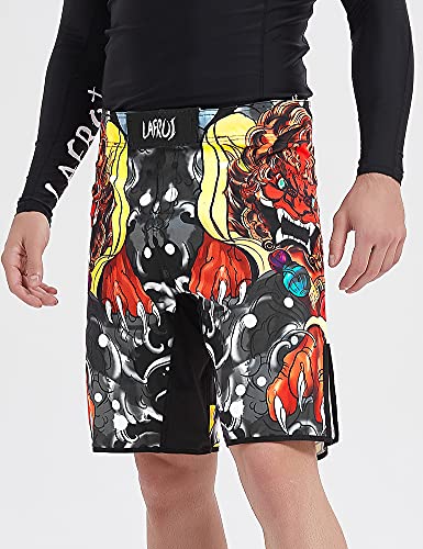 LAFROI QJK01 Pantaloni da MMA, Boxe, Cross Training e Altri Sport da Combattimento, con Coulisse e Tasca, Uomo, Lion Dance,XL