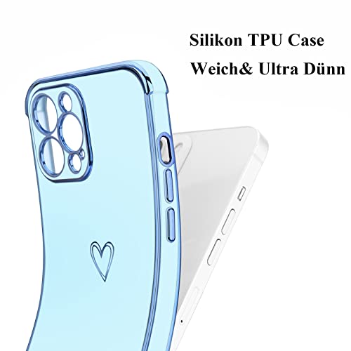 Lafunda Compatibile per iPhone 12 Pro Max Cover amore cuore Custodia per Donne morbido silicone sottile Case con protezione fotocamera Dorata Placcatura Cornice Paraurti per iPhone 12 Pro Max Blu