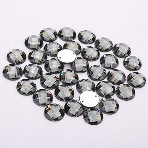 LAGEDOUDING 8mm / 10mm / 12mm / 15mm Rotondo Acrilico Piatto Posteriore Strass 2 Fori Cucito Strass Perline di Cristallo per Artigianato Fai da Te, Grigio, 10mm 100 Pezzi