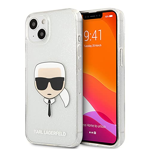 KARL LAGERFELD KLHCP13MKHTUGLS - Custodia per iPhone 13 da 6,1", colore: Argento glitterato Karl's Head