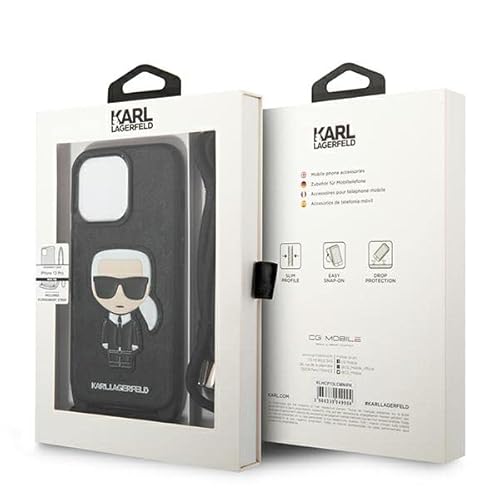 KARL LAGERFELD KLHCP13XCMNIPK - Custodia rigida per iPhone 13 Pro Max 6,7", in pelle, colore: Nero