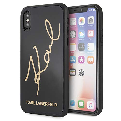 Karl Lagerfeld KLHCPXDLKSBK - Custodia firmata con logo glitterato per iPhone X, colore: Nero