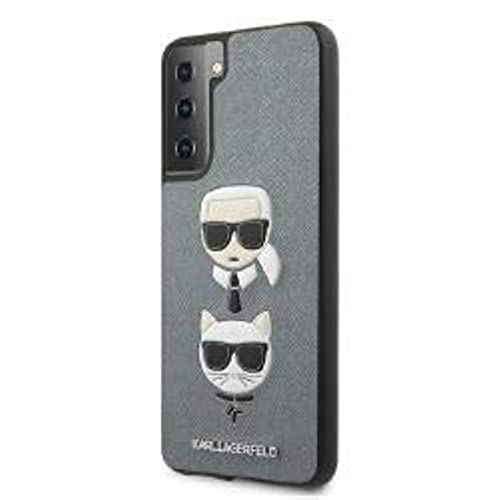 Karl Lagerfeld KLHCS21SSAKICKCSL - Custodia rigida Saffiano Ikonik Karl&Choupette Head per Samsung S21, colore: Argento