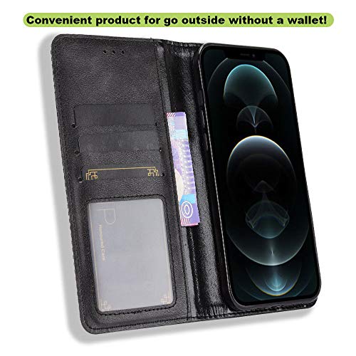 LAGUI Adatto per Apple iPhone 12 PRO Cover Protettiva in Morbido TPU + PU Custodia Portafoglio a Chiusura Magnetica con Pacchetto Anticaduta Antiscivolo Antiurto, Nero