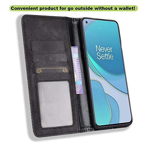 LAGUI Adatto per OnePlus 8T Cover Protettiva in Morbido TPU + PU Custodia Portafoglio a Chiusura Magnetica con Pacchetto Anticaduta Antiscivolo Antiurto, Nero