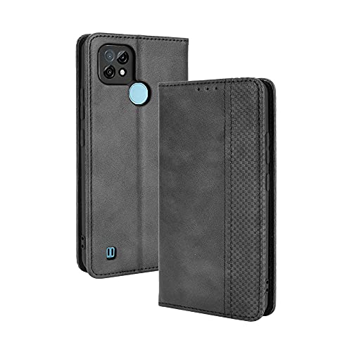 LAGUI Adatto per Realme C21 Cover Protettiva in Morbido TPU + PU Custodia Portafoglio a Chiusura Magnetica con Pacchetto Anticaduta Antiscivolo Antiurto, Nero