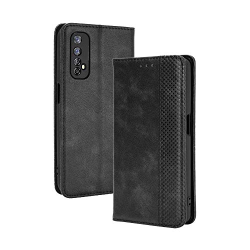 LAGUI Adatto per Oppo Realme 7 Cover Protettiva in Morbido TPU + PU Custodia Portafoglio a Chiusura Magnetica con Pacchetto Anticaduta Antiscivolo Antiurto, Nero