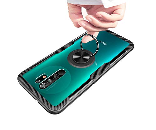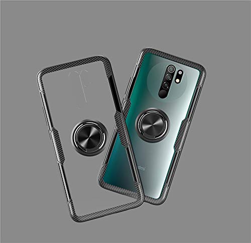 LAGUI Compatible per Cover Xiaomi Redmi 9, Trasparente Custodia con Anello Supporto Adatto per Supporti Magnetici da Auto, Nero